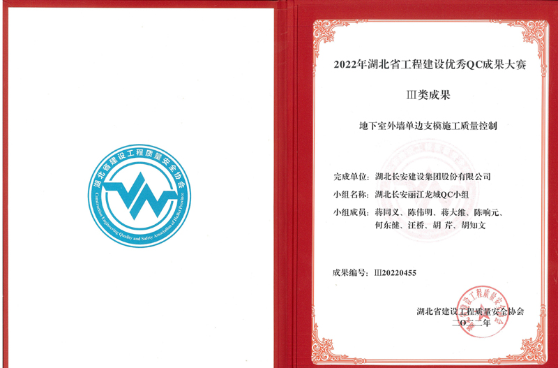 地下室外墻單邊支模施工質量控制(2022年湖北省QC大賽Ⅲ類成果獎)