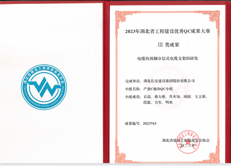 《電纜溝預制分層式電纜支架的研發》獲評湖北省工程建設優秀QCⅢ類成果獎
