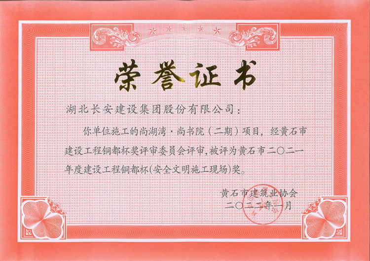 黃石尚湖灣?尚書院二期項目榮獲安全文明施工現場和結構優質工程