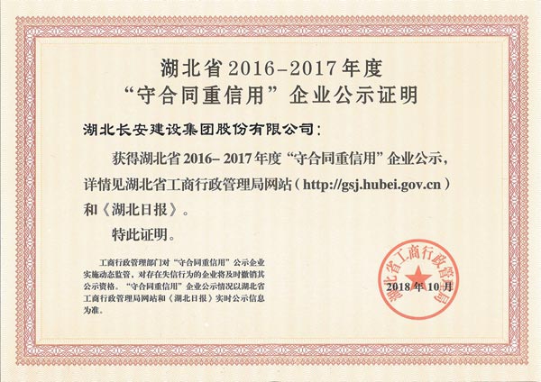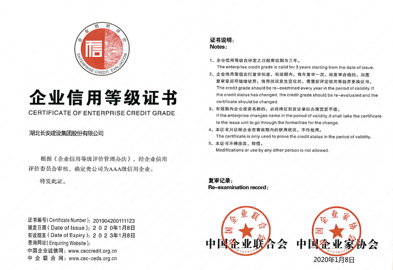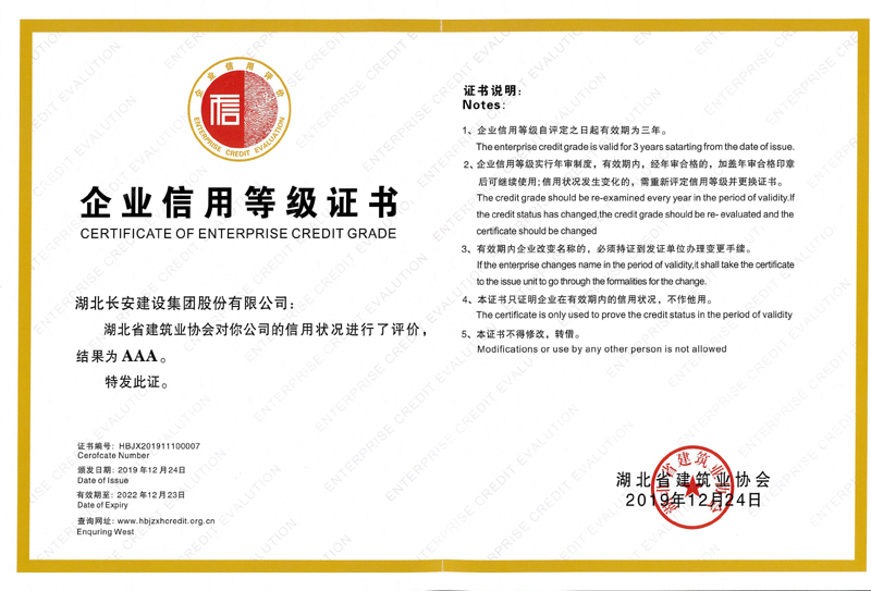 湖北省建筑業協會企業信用AAA等級