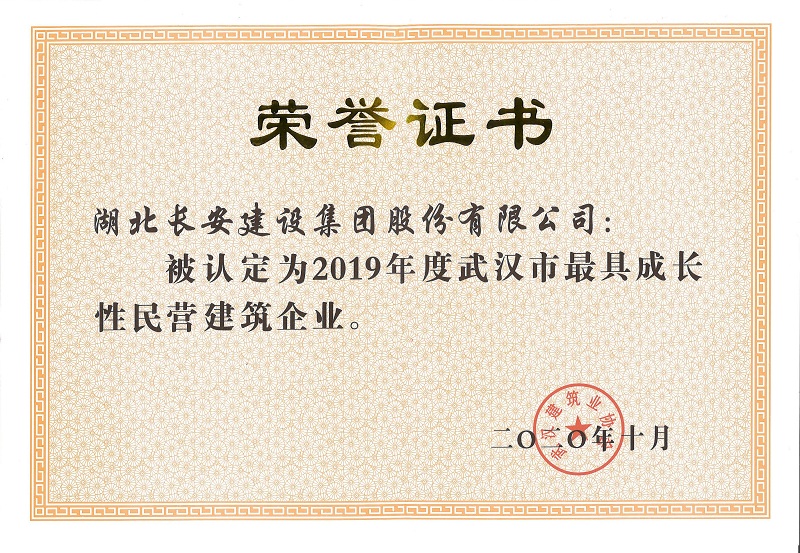 2019年度武漢市最具成長性民營建筑企業