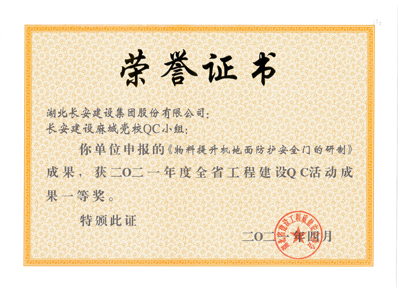 • 物料提升機地面防護安全門的研制(2021年度湖北省QC活動成果一等獎)