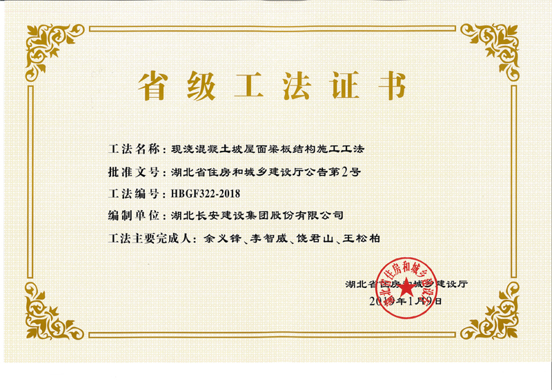 • 現澆混凝土坡屋面梁板結構施工工法(省級)