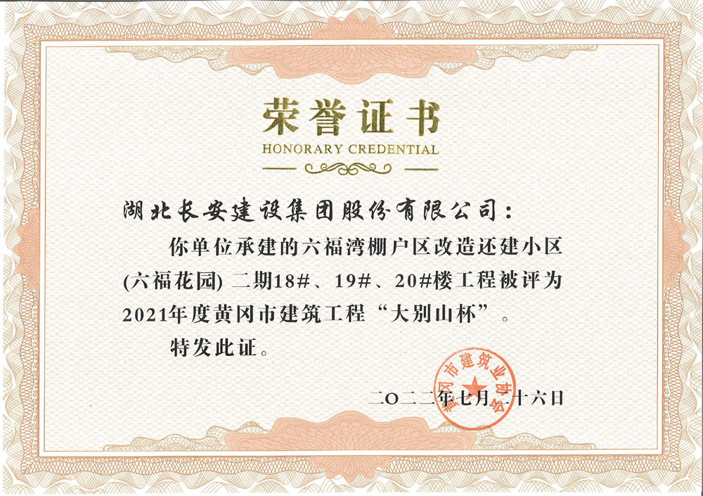 公司承建的4個工程被評為2021年度黃岡市建筑工程“大別山杯”