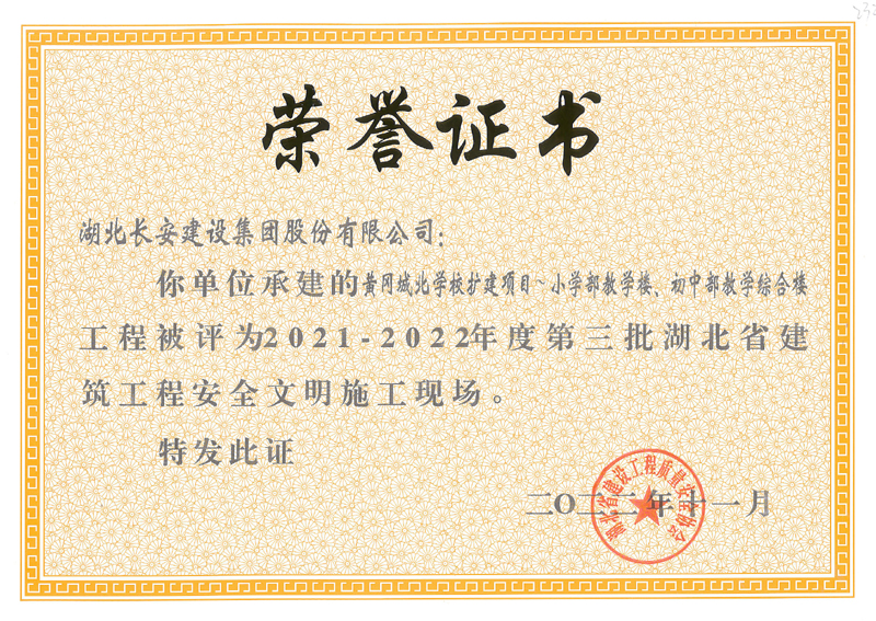麻城市公共衛(wèi)生中心等8個工程項目榮獲2021-2022年度第三批湖北省建筑工程安全文明施工現(xiàn)場