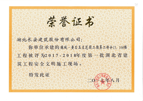 綠城黃石玉蘭花園二期第二部分15、16#樓2017-2018省安全文明施工現場2017