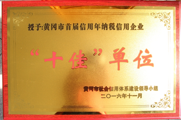 授予黃岡市首屆信用年誠信經營企業“十佳”單位(2016)