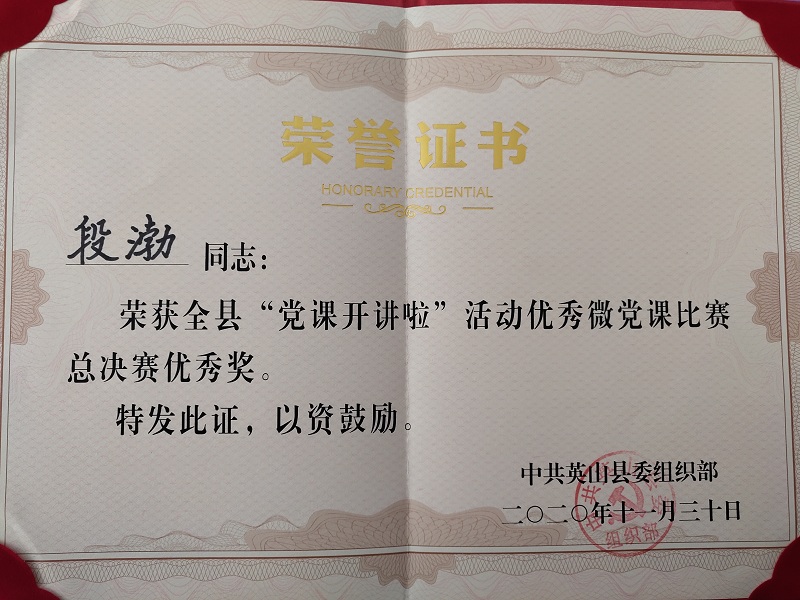 集團(tuán)榮獲“黨課開講了”優(yōu)秀微黨課比賽組織獎(jiǎng),方恬、段渤分別獲獎(jiǎng)