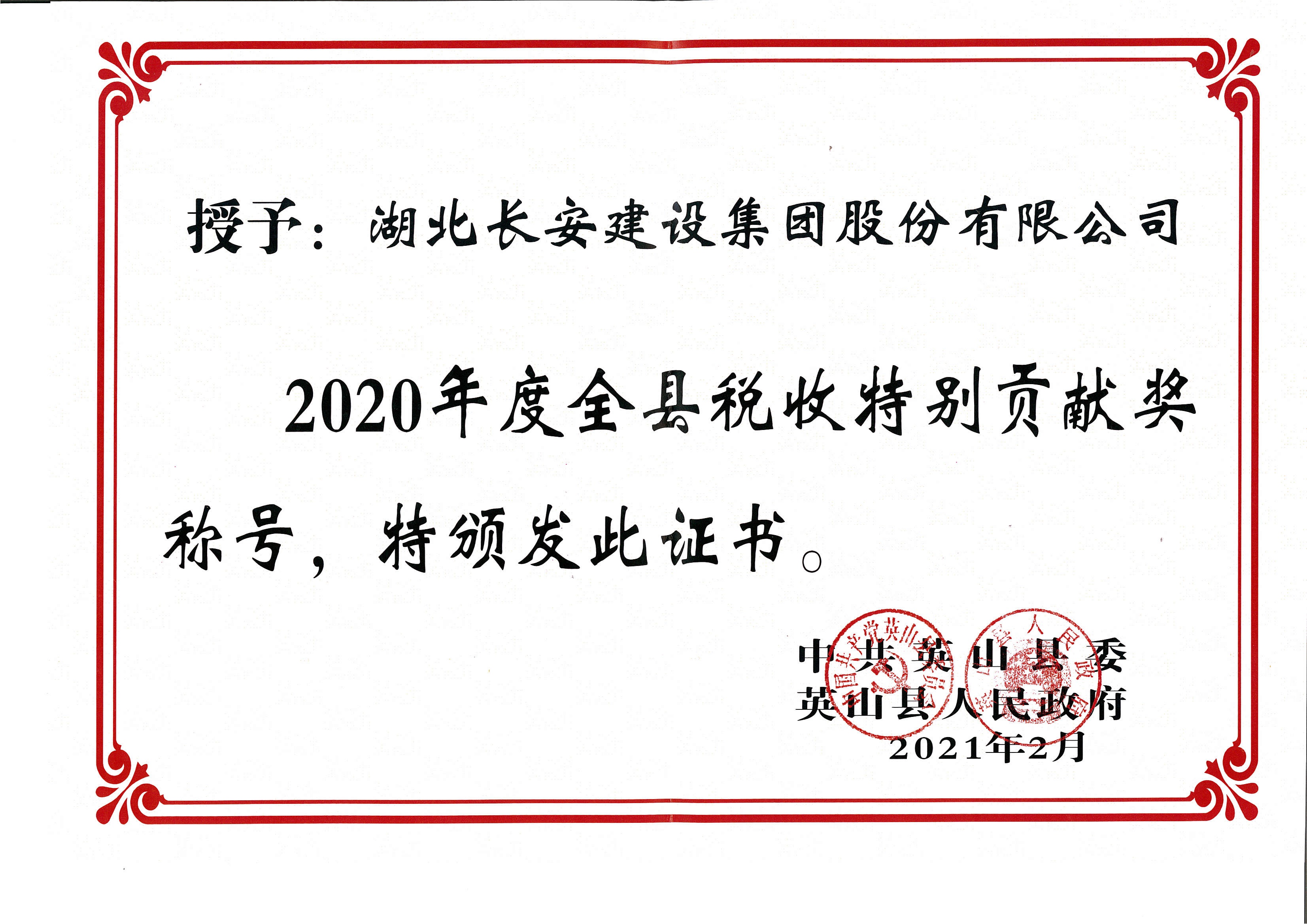 集團被英山縣人民政府授予“稅收特別貢獻獎”企業榮譽稱號