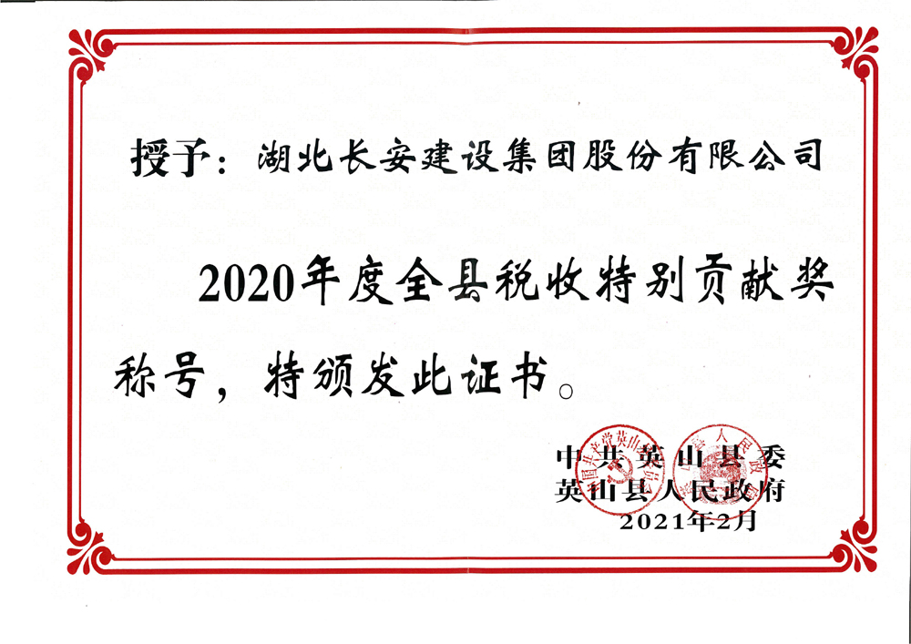 2020年度英山縣稅收特別貢獻獎
