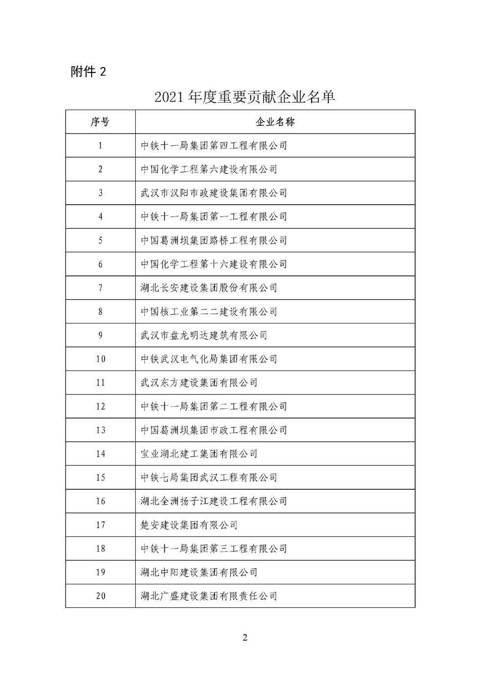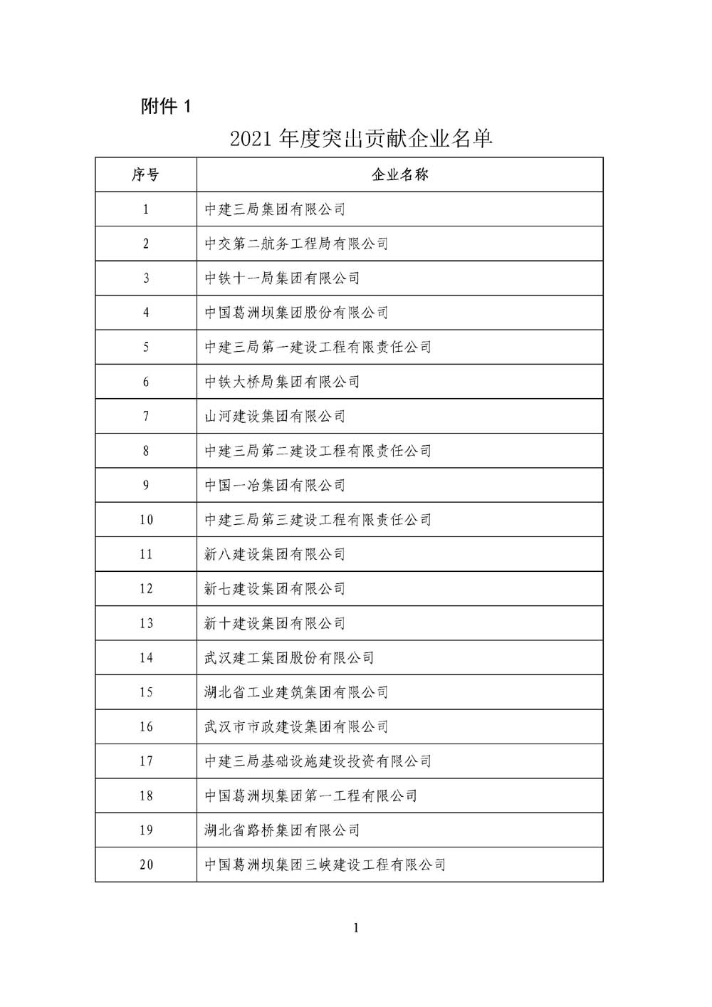 湖北建筑業的快速發展離不開全省建筑同仁的共同努力奮斗,其中中建三局集團有限公司等20家企業作出了突出貢獻,中鐵十一局集團第四工程有限公司等95家企業作出了重要貢獻。