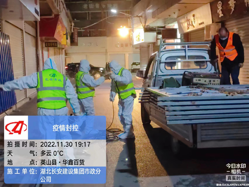 11月30日晚上7時17分,寒風呼嘯,氣溫驟降,集團市政分公司組織精干力量,趕赴英山漢正街進行分隔作業施工,全力支持疫情防控工作。