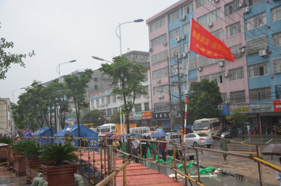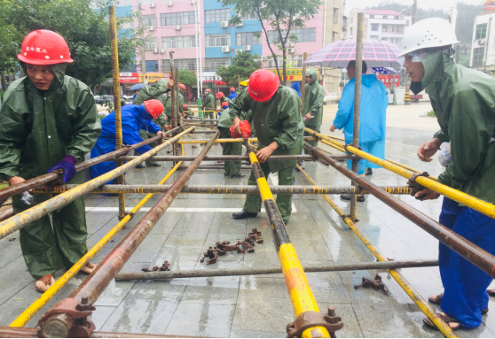 “我們絕對保證不讓任何一個考生因暴雨影響和洪災(zāi)阻隔而進不了考場。長安建設(shè)集團有信心有能力鋪平坎坷路,搭建‘防洪橋’,天涯變咫尺。”7月6日12時許,在英山縣委、縣政府的領(lǐng)導(dǎo)下,在時間緊、任務(wù)重、天氣惡劣的環(huán)境中,湖北長安建設(shè)集團董事長段衛(wèi)昌顧不上吃飯,迅速成立“抗擊洪災(zāi),保障高考”先鋒突擊隊,現(xiàn)場部署敦促搶建“防洪橋”。集團總經(jīng)理葉發(fā)保親自調(diào)度指揮,協(xié)調(diào)鋼管、模板、腳手架等搭橋必需物資。后勤各部門一切行動聽指揮,全力為“防洪橋”提供保障。短短一個小時,集團各項目基地100余人迅速在畢昇大橋集結(jié),冒著傾盆大雨積極投入到突擊隊伍中。
