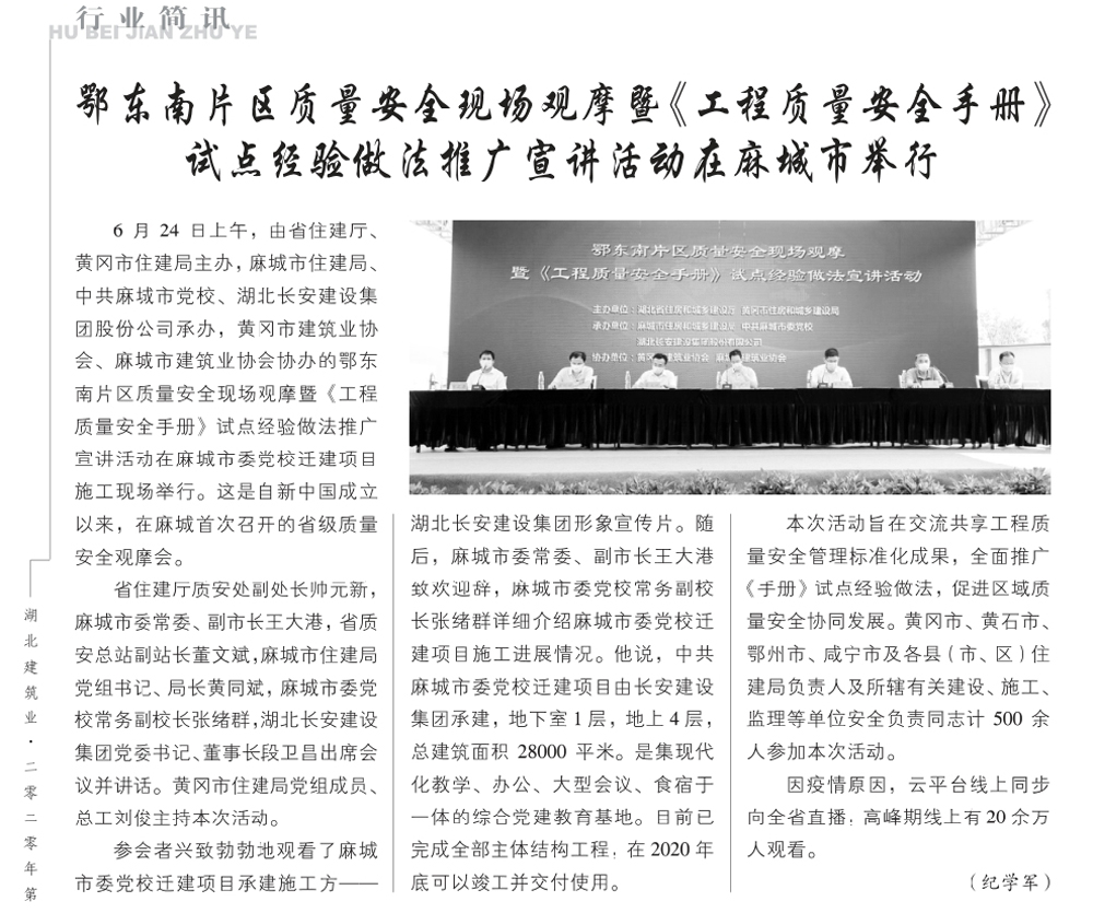 鄂東南片區(qū)質(zhì)量安全現(xiàn)場觀摩暨《工程質(zhì)量安全手冊》試點經(jīng)驗做法推廣宣講活動在麻城市舉行