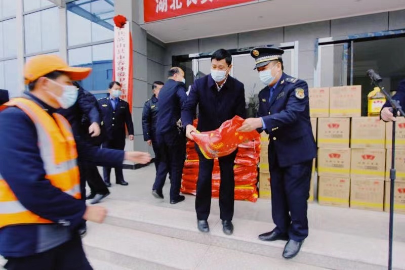 2月3日上午,湖北長安建設(shè)集團到縣環(huán)衛(wèi)局開展春節(jié)慰問環(huán)衛(wèi)工人活動,并送來米和油等慰問物資,價值近10萬元。集團董事長段衛(wèi)昌、董事余招剛一行參加慰問活動,并現(xiàn)場為環(huán)衛(wèi)工人發(fā)放慰問物資??h城管執(zhí)法局黨組書記、局長程子威帶領(lǐng)局班子成員、二級單位負(fù)責(zé)人、環(huán)衛(wèi)局全體干部職工參加活動。
